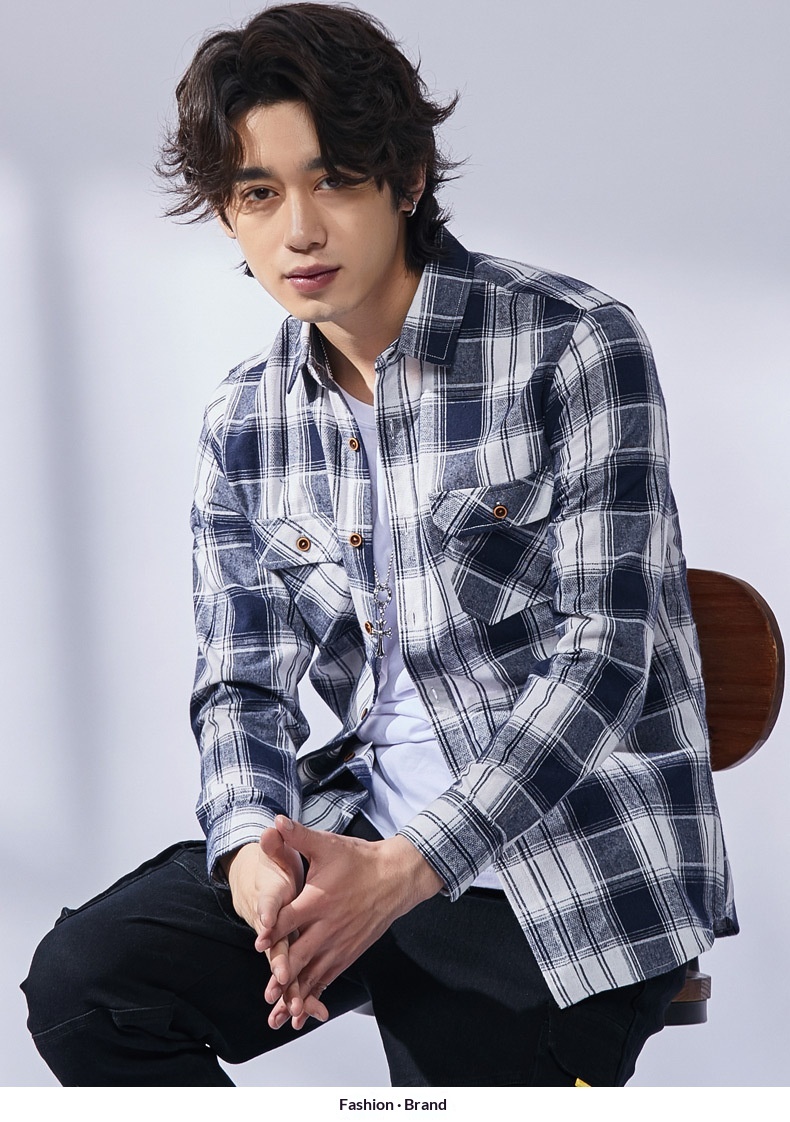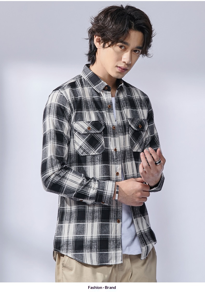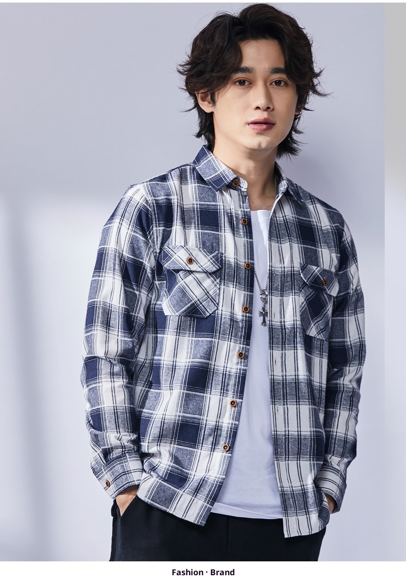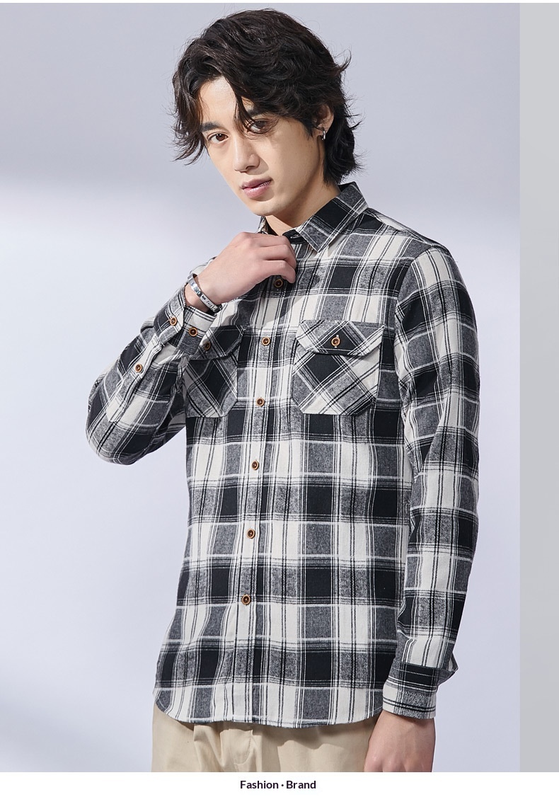 Men's Casual Plaid Lapel Long-sleeve Shirt