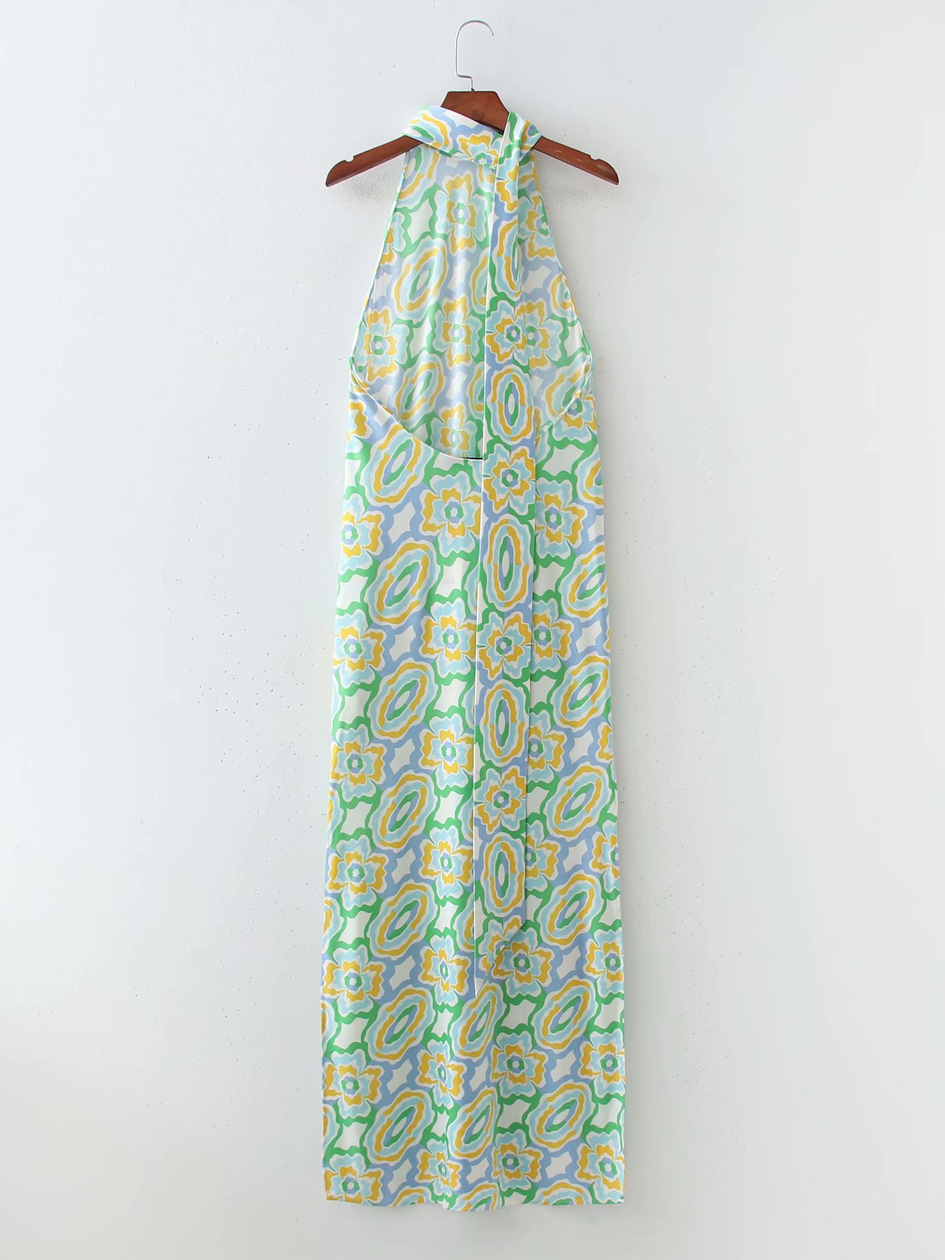 Spring Long Printed Midi Halterneck Dress