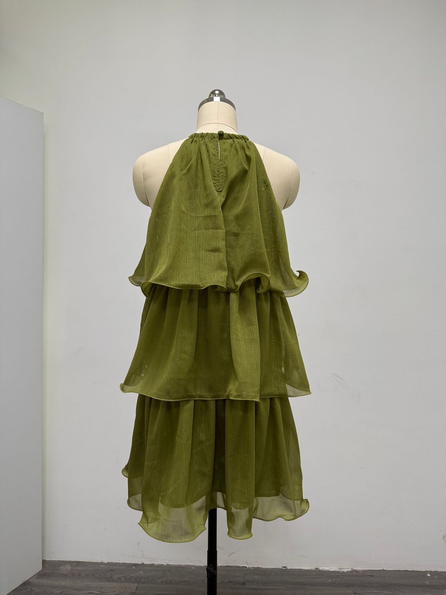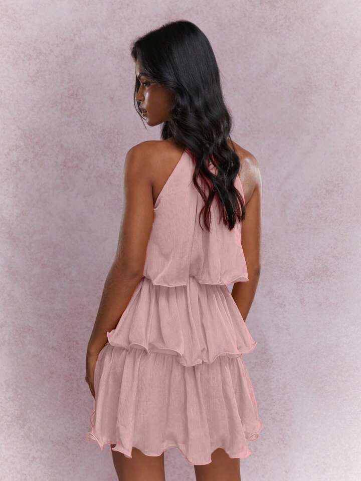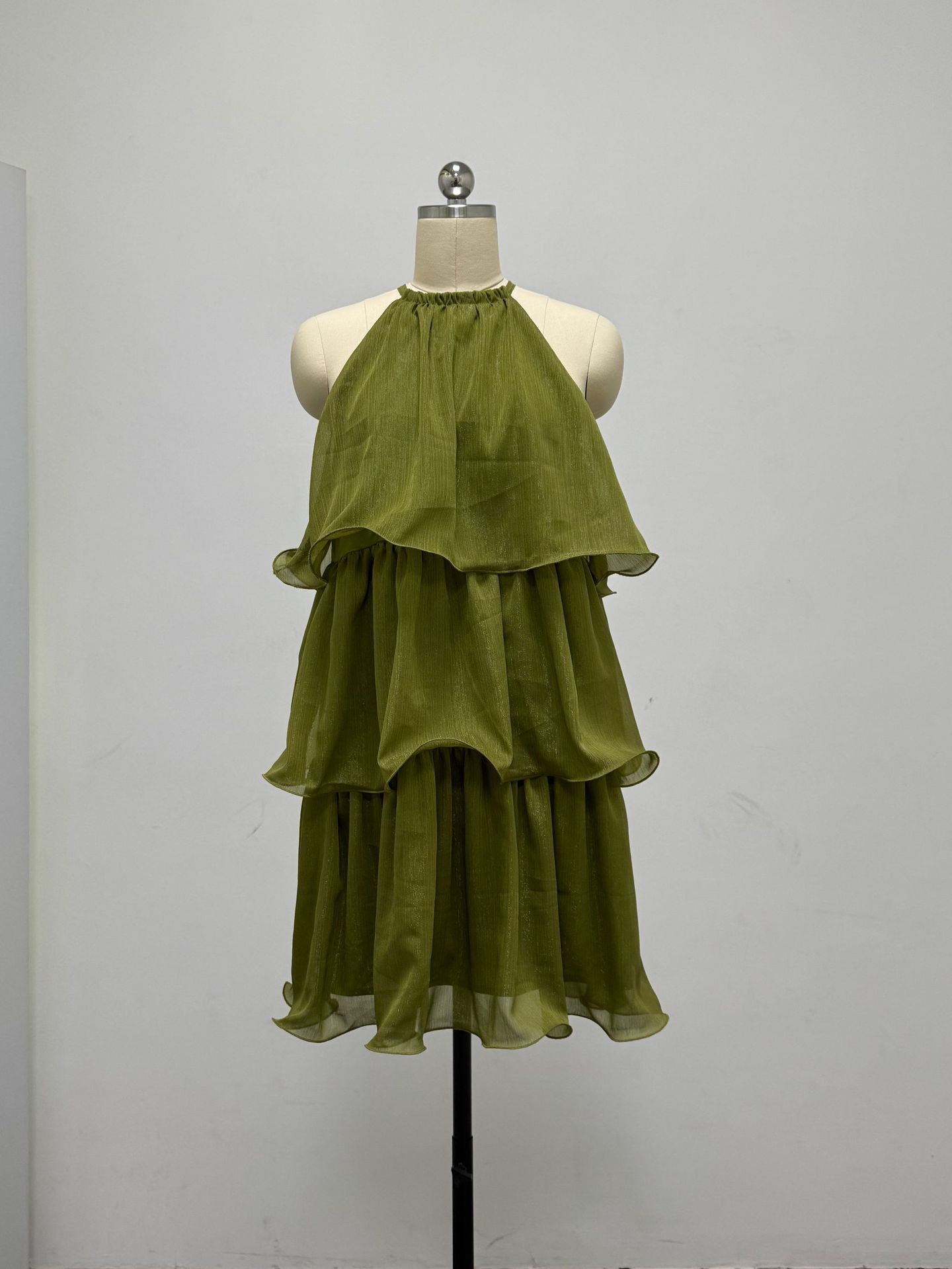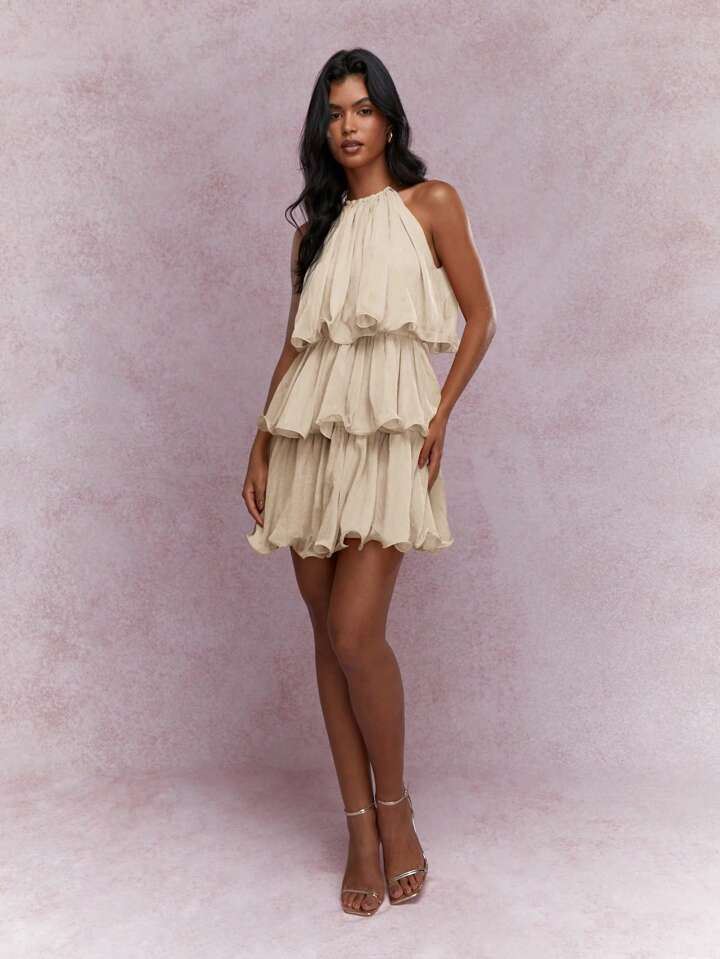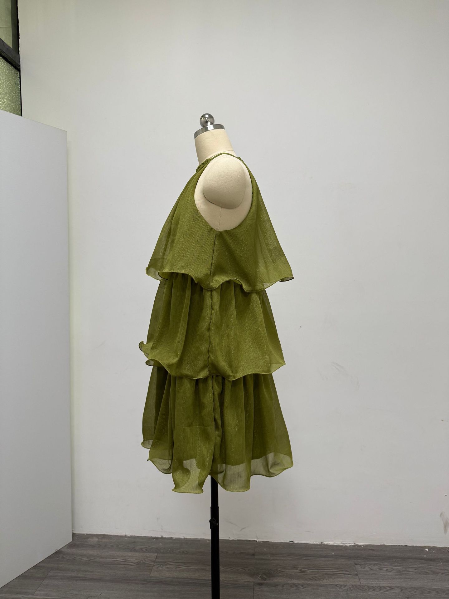 Strapless Sleeveless Sheer Dress With Ruffled Hem And Elegant Design
