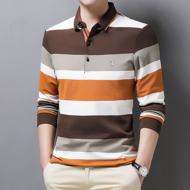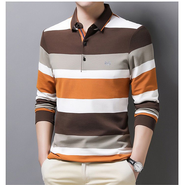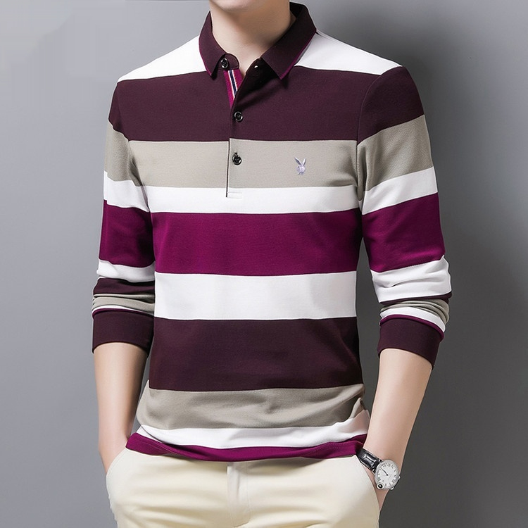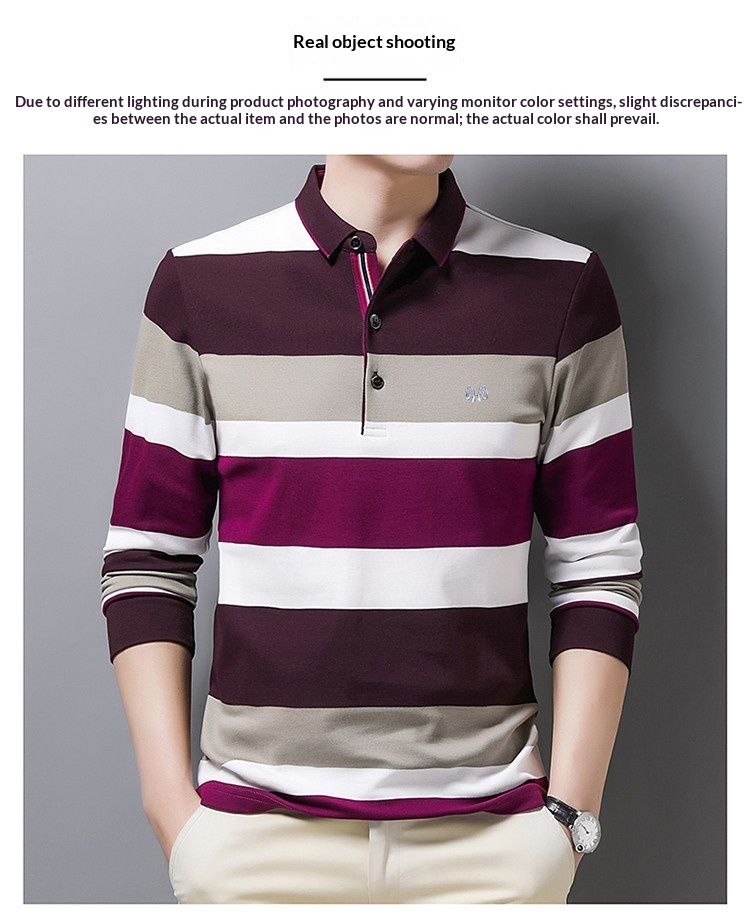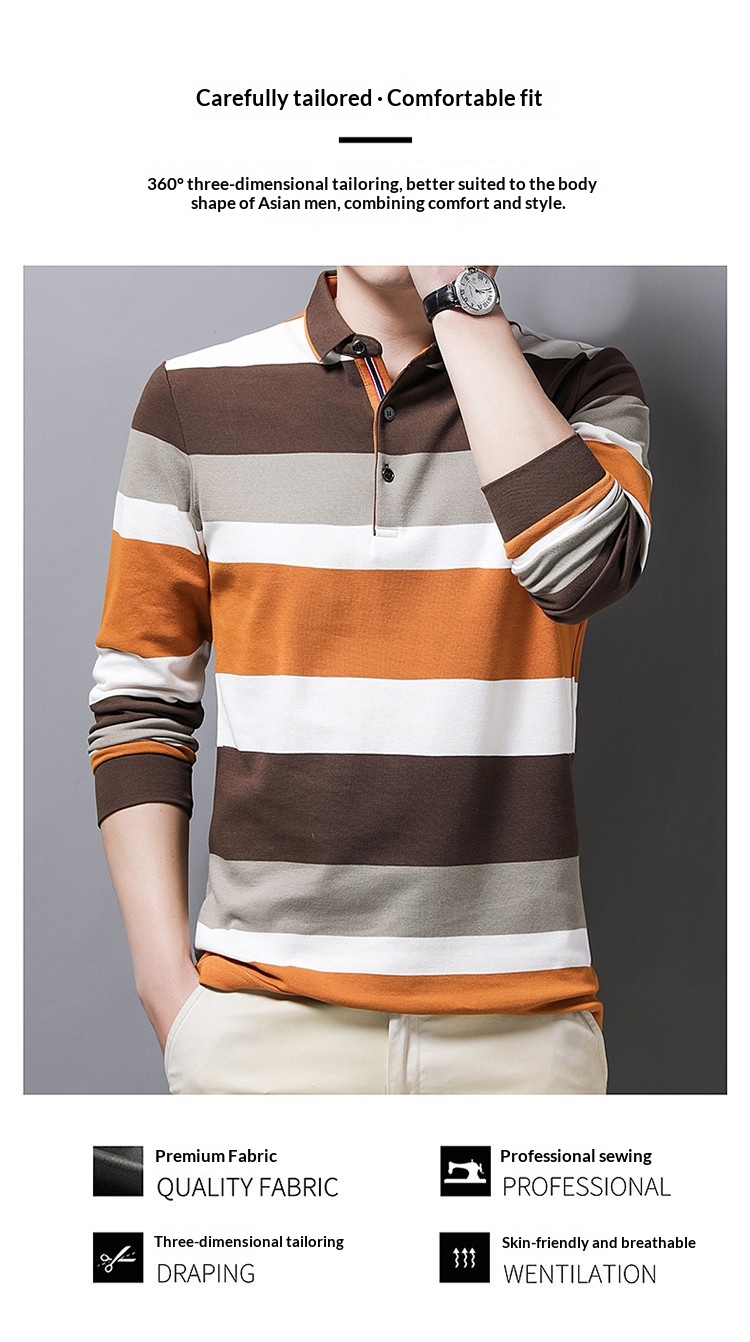 Striped Lapel Men's Long-sleeve
